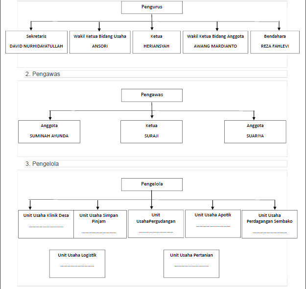 Dari hasil musyawarah, forum menetapkan susunan Pengurus dan Pengawas Koperasi Desa Merah Putih sebagai berikut :